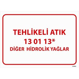 Tehlikeli Atık Uyarı Levhası – Diğer Hidrolik Yağlar 13-01-13, tehlikeli atık sınıfına giren hidrolik yağların bulunduğu alanlarda çalışanları uyarmak ve