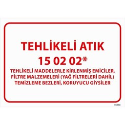 Tehlikeli Atık Uyarı Levhası – Filtre Malzemeleri 15-02-02, tehlikeli atık sınıfına giren filtre malzemelerinin bulunduğu alanlarda güvenliği sağlamak için kullanılan