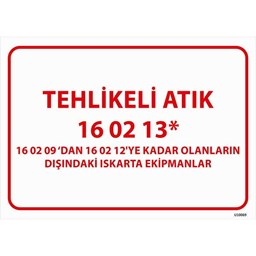 Tehlikeli Atık Uyarı Levhası – Iskarta Ekipmanlar (16-02-13), kullanım dışı kalmış ve tehlikeli madde içerebilen elektronik ve mekanik ekipmanların doğru