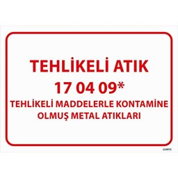 “Tehlikeli Atık Uyarı Levhası – Metal Atıkları (17-04-09)”, inşaat, sanayi ve üretim süreçlerinde ortaya çıkan tehlikeli metal atıklarının uygun şekilde