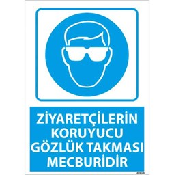 Ziyaretçilerin Koruyucu Gözlük Takması Mecburidir ürünü, güvenlik ve sağlık önlemlerinin ön planda olduğu alanlarda kullanılmak üzere tasarlanmıştır. Bu gözlükler, ziyaretçilerin