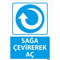 Sağa Çevirerek Aç Uyarı Levhası, kapıların veya cihazların doğru şekilde açılabilmesi için gerekli yön bilgisini sağlayan pratik bir güvenlik levhasıdır.