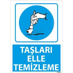 Taşları Elle Temizleme Uyarı Levhası, özellikle inşaat alanları, taş ocakları ve diğer ağır iş makinelerinin kullanıldığı ortamlarda, iş güvenliğini artırmaya