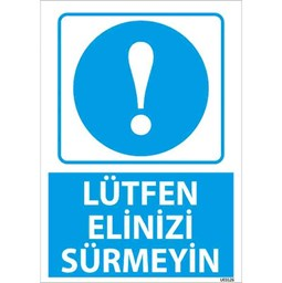 Lütfen Elinizi Sürmeyin Uyarı Levhası, özellikle hassas, tehlikeli veya zarar görebilecek yüzeylerin bulunduğu alanlarda kullanıcılara uyarı vermek amacıyla tasarlanmıştır. Bu