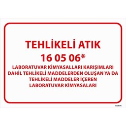 Tehlikeli Atık Uyarı Levhası – Laboratuvar Kimyasalları 16-05, laboratuvarlarda kullanılan tehlikeli kimyasal maddelerin bulunduğu alanlarda güvenliği sağlamak amacıyla kullanılan bir