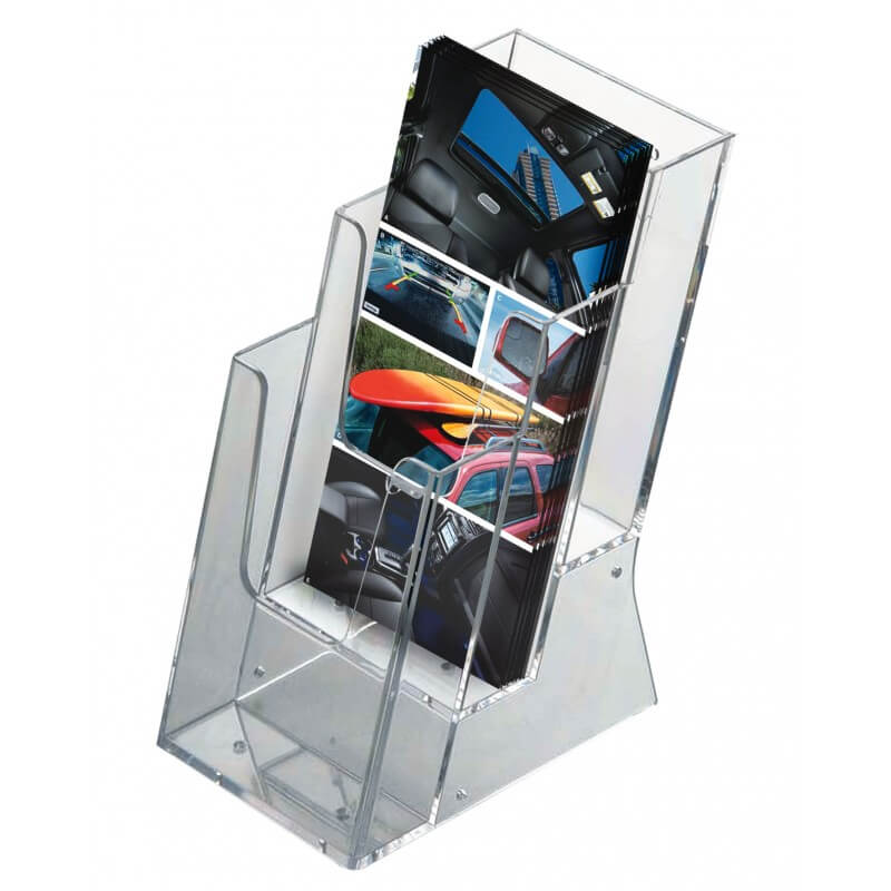 Broşürlükler lazer makinelerinde kesilerek istenilen ebatta hazırlanabilir. Dayanıklı ve hafif bir yapıya sahip olan broşürlükler istenilen her alanda kullanılabilir. Masa üstünde, ayaklı şekilde, duvara monte şeklinde ve mini masa üstü şeklinde modellere sahiptir. Masa üstü broşürlükler dikey ve yatay olarak konumlandırılabilir. Sade yapısı ile masa dekorasyonuna ayrıca şıklık katar. Broşürlükler iş yerlerinde, ofislerde, bankalarda, mağazalarda ve işletmelerde oldukça tercih edilen ürünler arasındadır. Broşür kağıtlarının ebatlarına göre hazırlanan broşürlükler tanıtım için sıkça kullanılan, kolay taşınabilen ve sağlam bir yapıya sahiptirler. Cam görünümlü ve camdan daha dayanıklı yapıya sahiptir. Tek katlı ve çok katlı olarak üretilen broşürlükler fuar ve tanıtım alanlarında kullanılabilmektedir. Broşür ve katalog sergileri için oldukça uygundur. Masa üstü broşürlükler restoran gibi işletmelerde fiyat etiketi ya da menü için de kullanılabilmektedir. Firmamız kaliteli broşürlük ürünlerini ekonomik olarak en uygun fiyatlarda alıcılarına sunar. Promosyon ve tanıtım için ürünler üzerine istenilen baskı ve logo çalışmaları yapılabilmektedir. Broşürlük ve daha fazla tanıtım ürünleri için firmamız ile iletişime geçebilirsiniz.
