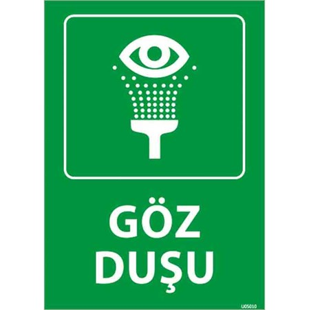 Kimyasal maddelerle çalışan ortamlarda göz teması sonucu oluşabilecek hasarları önlemek için hayati öneme sahip olan göz duşu 2 uyarı levhası, çalışanları en yakın göz duşu istasyonuna yönlendirerek hızlı müdahaleyi sağlar. Fosforlu ve dayanıklı malzemeden üretilen bu levhalar, yüksek görünürlük sağlar ve uzun ömürlüdür.