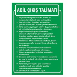 Acil Çıkış Talimatı Uyarı Levhası, acil durumlarda çalışanların ve ziyaretçilerin güvenli bir şekilde tahliye edilmesini sağlamak için kullanılan yönlendirici bir