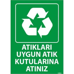 “Atıkları Uygun Atık Kutusuna Atınız Uyarı Levhası”, çevre temizliğini ve sürdürülebilir atık yönetimini teşvik etmek amacıyla kullanılan bir yönlendirme levhasıdır.