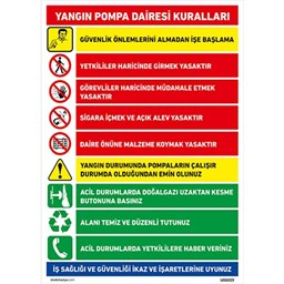 Yangın Pompa Dairesi Kuralları Uyarı Levhası, yangın pompa dairesinin kullanımına dair belirli güvenlik kurallarını vurgulayan önemli bir işaret levhasıdır. Yangın