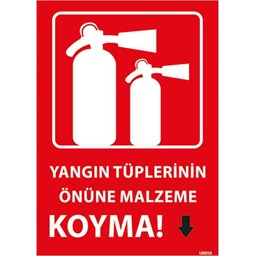 Yangın Tüplerinin Önüne Malzeme Koyma Uyarı Levhası, yangın tüplerinin önüne herhangi bir malzeme veya engel konulmaması gerektiğini belirten önemli bir