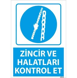 Zincir ve Halatları Kontrol Et Uyarı Levhası, özellikle vinçler, kaldırma ekipmanları, depo ve inşaat alanlarında kullanılan önemli bir güvenlik levhasıdır.