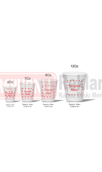 - Bardak ölçüleri mm cinsinden aşağıdaki gibidir. (Ağız x Dip x Yükseklik):