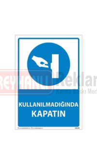 Etiketler: Kullanılmadığında kapatın levhası, enerji tasarruf tabelası, kaynak tasarrufu uyarı levhası, iş güvenliği tabelası, çevre dostu tabelalar, elektrik tasarrufu uyarısı, sürdürülebilir çalışma levhası.