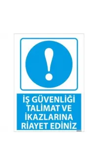 Etiketler: İkazlara riayet et uyarı levhası, güvenlik levhası, iş yeri güvenliği, ikaz levhası, tehlike uyarı levhası, iş kazaları önleme, endüstriyel güvenlik levhası, güvenli çalışma alanı