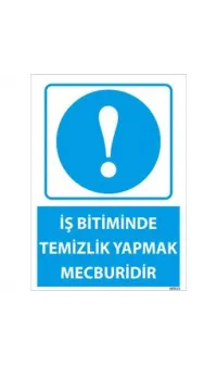 İş Bitiminde Temizlik Yapmak Mecburidir Uyarı Levhası