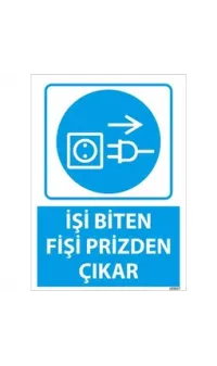 İşi Biten Fişi Prizden Çıkar Uyarı Levhası
