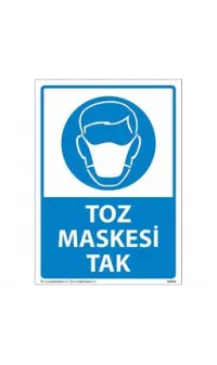 Toz Maskesi Tak Uyarı Levhası, tozlu ve kirli ortamlarda çalışanların solunum yollarını koruması içi..