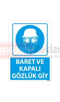 Baret ve Kapalı Gözlük Giy Uyarı Levhası