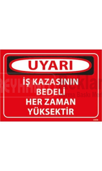 İş Kazasının Bedeli Her Zaman Yüksektir Uyarı Levhası