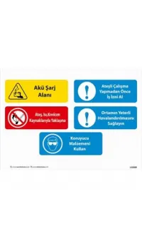 Akü Şarj Alanı Uyarı Levhası, akülerin güvenli bir şekilde şarj edilmesi gereken alanları belirten, dikkat çekici ve bilgilendirici bir tabeladır. Bu levha, özellikle elektrikli araçlar, forkliftler, jeneratörler veya diğer aküyle çalışan cihazlar için şarj istasyonlarında kullanılabilir. Akü şarjı sırasında güvenlik önlemlerine uyulması gerektiği konusunda uyarı sağlar ve doğru kullanım alanlarını belirtir. Dayanıklı ve uzun ömürlü malzemeden üretilmiş olup, iç ve dış mekanlarda etkili bir şekilde kullanılabilir. Çalışanların ve kullanıcıların güvenliğini sağlamak için kritik bir uyarıdır.