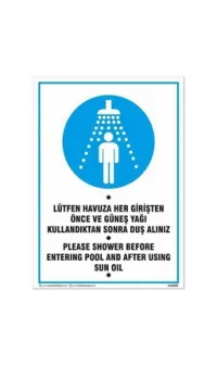 Havuza Girmeden Duş Alınız Uyarı Levhası