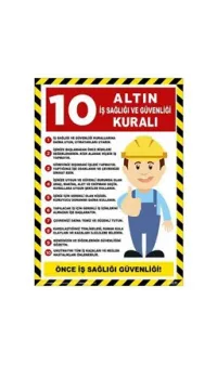 10 Altın İş Sağlığı ve Güvenliği Uyarı Levhası, çalışanları iş yerlerinde güvenlik ve sağlık konusunda bilgilendiren önemli bir tabela olup, iş güvenliği kurallarını hatırlatır. Bu levha, iş yerinde uyulması gereken 10 temel güvenlik kuralını belirtir ve tehlikeleri önlemeye yardımcı olur. Dayanıklı malzeme ile üretilmiş olup, çeşitli hava koşullarına, suya ve güneşe karşı dayanıklıdır. Kolay montaj özelliği sayesinde ofislerde, fabrikalarda, inşaat alanlarında ve diğer çalışma ortamlarında rahatlıkla kullanılabilir.