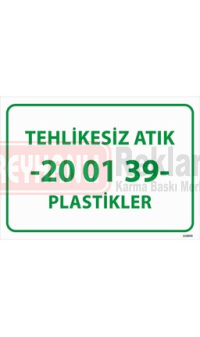 Tehlikesiz Atık 20-01-39 Plastikler Uyarı Levhası