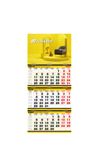 *Minimum Sipariş 100 Adettir. *3 Parça Spiralli *Takvim Ebat: 33 x 73 cm *Ayna: 350gr. A.Bristol *Alt Karton: 350gr. A.Bristol *Orta Blok: 700gr. A.Bristol *Reklam Alanı: 33 x 23 cm *Blok Ebat: 33 x 16 cm *Yaprak Kağıdı: 80gr. 1.Hamur