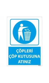 Etiketler: Çöpleri çöp kutusuna atınız levhası, çevre temizliği levhası, temizlik hatırlatıcı levhası, hijyen uyarı levhası, atık yönetimi işareti, düzenli temizlik uyarısı, ofis temizlik levhası.
