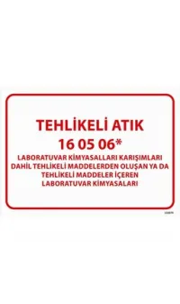 Tehlikeli Atık Uyarı Levhası Laboratuvar Kimyasalları 16-05-