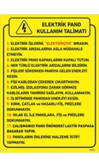 Elektrik Pano Kullanım Talimatı Uyarı Levhası