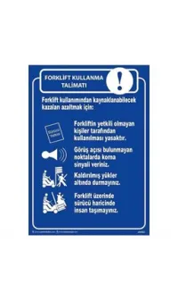 Etiketler: forklift kullanma talimatı, forklift güvenliği, forklift uyarı levhası, iş güvenliği levhası, forklift kullanım kuralları, depo güvenliği, iş kazalarını önleme, güvenli çalışma ortamı, forklift talimatları, dayanıklı levha