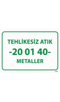 Tehlikesiz Atık 20-01-40 Metaller Uyarı Levhası
