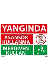 Etiketler: Yangında Merdiven Kullan Uyarı Levhası, yangın anında merdivenlerin kullanılmasını hatırlatan önemli bir güvenlik levhasıdır. Acil tahliye için rehberlik sağlar.